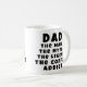 Dad Man Myth Legend Coffee Addict Funny Father's Day Mug. Funny Father's day mug with humourous quote ' Dad, the Man, the Myth, the Legend, the Coffee Addict '. The text is in modern bold black typography. You can change any text on the mug.