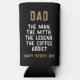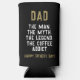 Dad Man Myth Legend Coffee Addict Funny Father's Day Seltzer Can Cooler. Funny Father's day can cooler with humourous quote ' Dad, the Man, the Myth, the Legend, the Coffee Addict '. The text is in modern bold typography. You can change any text.