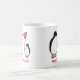 Happy birthday dad cute illustrated penguins cup. The child shown is holding a balloon that reads 50. The age and messages shown can be personalised to any birthday or person. Perfect for a son or daughter to give their father on his special day.