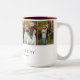 Celebrate Dad with this meaningful First Father’s Day photo collage two-tone coffee mug, designed to beautifully showcase five cherished memories in a modern and heartfelt way. Featuring a clean, minimal collage layout with space for five photos, this design keeps the focus on your most special moments while maintaining a refined and stylish aesthetic. The word “DAD” is displayed across the photos in sophisticated typography, with the first letter styled in elegant calligraphy and a subtle heart detail, paired with a timeless serif font for a polished, elevated look. The phrase “First Father's Day” can be personalized along with family members’ names and your family last name, making this mug truly one of a kind. Perfect for celebrating a first Father’s Day, this thoughtful keepsake honors a new dad’s journey with a blend of sentiment and everyday function. Ideal for coffee, tea, or daily use, it’s a meaningful gift he’ll reach for and appreciate every day. Customize with your favorite photos and a heartfelt message to create a lasting memory he’ll treasure for years to come. Original design and layout by Moodthology Papery.