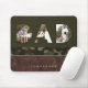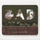 Celebrate father's day with our rugged and masculine camo and faux leather personalised "DAD" mouse pad. The design features "DAD" letters with each letter displaying your own special family memory photo. Dark army green with army camouflage pattern paired with brown faux leather to create a stylish rugged look. Camo artwork by Moodthology.