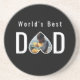 Dad Photo in Black Heart Frame Modern Text Coaster