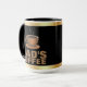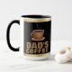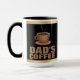 Step it up a notch with my "DAD’S COFFEE" mug. This version adds a touch of class with a black background and gold coloured trim at the top and bottom. The bold text can be personalised and you can change the background colour. The design is on both sides of the mug.