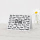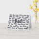 Dad text in black in foreign languages word cloud on whitewashed wood background with eyeballs and black glasses