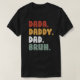 This design features a black t-shirt with the words "DADA.", "DADDY.", "DAD.", and "BRUH." stacked vertically in a stylised font with different colours.