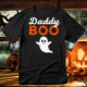 Modern family matching Halloween shirt design features "Daddy Boo" typography text in orange and white with a little ghost accent.