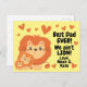 Celebrate Father's Day with this super sweet and adorable Daddy Lion with cubs card. Features a yellow background with a Daddy Lion and his two cubs snuggling. The lions are accented with orange hearts. On the side it reads 'Best Daddy EVER! We ain't LION! Love, '. Personalise this with your children's name. Dads all over are sure to love this card. Clipart by Graphic Adventure.