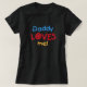 Daddy Loves Me T-shirts, long sleeve tees, sweatshirts,pullover hoodies, hats, ruffle shirts, sleeveless dresses, ruffle dresses, raglan T-shirts, football bodysuits, organic bodysuits, and other apparel for baby with text of red, blue, and gold with a heart that reads Daddy Loves Me!