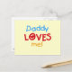 Daddy Loves Me T-shirts, bodysuits, magnets, cards, stickers, tote bags, stickers, and other items with blue, red, and yellow text design.