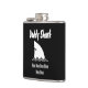 The flask itself is fine. It’s a cheap flask, obviously bought in bulk, however am prepared to overlook that. Given that it is a personalized item, I would have liked to have seen gift boxing instead of the generic packaging. Terrible printing, and/or quality. It’s a cheap, tacky vinyl. It is not cut straight and is also applied in a way that it is overhanging the bottom, causing the glue to catch on items and it will eventually roll and tear, damaging the wrap.
