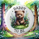 Woodland creatures themed Daddy to be baby shower button. A sweet watercolor illustration of a bear in a patch of grass in the woods.