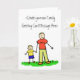 Father and son hold hands. The father's shirt read "daddy" and the little boy's shirt reads "me". The family has blonde hair. The image comes in multiple colour versions. There is also a no colour drawing version too. Customise this note card with your personalised greeting message to make a special custom greeting cards for Father's Day, new fathers, family reunions, or other special family holidays.