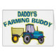 Cute farming t-shirts and gifts for kids that feature a blue farming tractor and the saying, Daddy's Farming Buddy. Cute farming design and saying for kids who have daddy's that farm.
