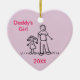 Father and daughter hold hands. The dad's shirt reads "daddy" and the little girl's dress reads "me". The image comes in multiple ethnic family versions. Text notes "Daddy's Girl", but can be customised to names. Update the "20XX" to the current year. Add your personalised father and daughter family photograph to the back of the ornament. Personalise the father and daughter ornament with family names or a personal message for a special father or daddy ornament pendant gift! You can make custom family ornaments for a special Father's Day gift, new daddy and/or new baby, Family Reunion or other customised family art gifts!