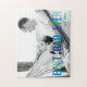 Dads Custom Photo Best Dad Ever with Year Father's Day Gift puzzle. Best Dad Ever written in block print in shades of blues and greens overlay your own custom photo. Use a black and white photo for a trendy modern look. Personalize date established in green with year that first child was born. A personalized gift for a dad. www.SamAnnDesigns.com