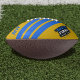 A yellow and blue striped football for the dad who is celebrating his First Father's Day. Add his initials!