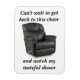 When Dad gets up to watch TV, he might forget that when he's done getting a ginger ale or whatever, he's got a chair waiting for him. Not just any chair: Dad's Good Chair. He worked hard for that chair and now he won't forget it because you bought a magnet of it and put it on his fridge.