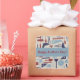 Square sticker with an image of an assortment of red, navy and light blue tools on cream. Blue ribbon across the middle has a customisable sentiment. See matching confetti, favour box, favour tag, gift bags, label and wrapping paper. See the entire Father’s Day Sticker collection in the INVITES | Stickers & Labels section.