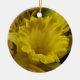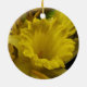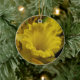 This lovely floral holiday ornament features closeup photography of golden yellow daffodils and forsythia blossoms to form an artistic, almost abstract composition.