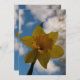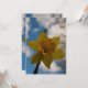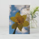 Beautiful yellow daffodil against blue sky with some clouds.