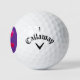 Callaway Golf Warbird Distance =optional, =(3 Pack of Golf balls), with a picture of a yellow tulip, triple pink roses, personalise= "Name"=medium green text, a red tulip, a White and Yellow Daffodil, pink rose#4, reduced in size, with the background removed, and a Dark Purple colour, background added all over= (Pictures by P.J.M.) on it.