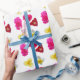 A Roll of wrapping paper, 29-inch x 6 feet,=optional= Matte Wrapping Paper, =optional ,with a picture of a Yellow Tulip, White and yellow Daffodil, Triple Pink Roses, Pink Rose#4, and a Red Tulip, reduced or enlarged in size, with the background removed, with a White background added all over, = (pictures by P.J.M.)= all over the wrapping paper.