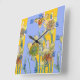 Daffodil Watercolour Womans Yellow Purple Art Square Wall Clock
