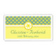 A simple daffodil design in a gold and green grid pattern, embellished with a white and yellow ribbon and a daffodil emblem.