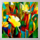 Daffodils. Abstract floral composition in a cubist style. Executed in oil on canvas with elements of pastel painting.
