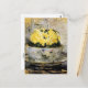 A postcard with the painting, Daffodils (1885), by Berthe Morisot (1841-1895), she was a French Impressionist artist. The art critic, Gustave Geffroy, called her Les trois grandes dames of Impressionism, along with Mary Cassatt and Marie Barcquemond. A beautiful bouquet of yellow daffodils in a stoneware bowl and saucer.