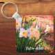 Pretty white daffodils beside a bubbling brook. Flower photography by Susan. You can personalise this keyring with any text you like.