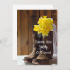 Say thanks and show your appreciation after your March, April or May spring time bridal shower or marriage with the charming Yellow Daffodils and Cowboy Boots Country Wedding Flat Thank You Note. These pretty custom rustic chic thank you notes feature a quaint floral photograph of brown leather western cowboy boots filled with yellow narcissus flower blossoms with a bridal veil and barn wood on white satin. Perfect inspo for a casual barn party or farm ranch style marriage ceremony and reception.