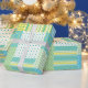 A roll of chic Wrapping Paper, with a faux-patchwork pattern of golden daffodils on turquoise, teamed with matching polka dots, check ginghams and stripes. Part of the Posh & Painterly 'Spring Sunshine' collection, you can easily customise this pattern by changing the scale or rotating it for a totally different effect.