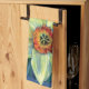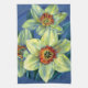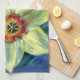 Fine art floral print by Sarah Trett. Enjoy spring all year round with this striking kitchen / tea towel. Perfect in a blue, yellow or orange kitchen. Reproduced from original watercolour and gouache painting on blue card by Sarah Trett.