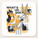 This engaging graphic celebrates the timeless Looney Tunes characters Bugs Bunny and Daffy Duck in a contemporary digital style. Set against a backdrop of pixelated orange blocks and abstract geometric shapes, Bugs and Daffy are captured in black, white, and orange, adding a fresh, modern twist to their classic designs. Bugs, with his characteristic charm, poses with his iconic question, "What's up, Doc?" while Daffy, ever the expressive foil, reacts with his usual exasperation. This playful and creative depiction blends traditional animation with digital art elements, perfect for fans who appreciate a mix of old and new.