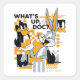 This engaging graphic celebrates the timeless Looney Tunes characters Bugs Bunny and Daffy Duck in a contemporary digital style. Set against a backdrop of pixelated orange blocks and abstract geometric shapes, Bugs and Daffy are captured in black, white, and orange, adding a fresh, modern twist to their classic designs. Bugs, with his characteristic charm, poses with his iconic question, "What's up, Doc?" while Daffy, ever the expressive foil, reacts with his usual exasperation. This playful and creative depiction blends traditional animation with digital art elements, perfect for fans who appreciate a mix of old and new.