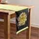 A 14X72 table runner with a photo of a dahlia flower against a blacked-out background