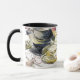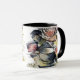 Custom art mug by artist Eileen Murray, featuring monoprint "Daily Grind"