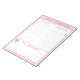 Daily planner notepad to keep track of your goals and lists. All wording are templates so you can use as is or replace with your own. The top section has a to do list, a notes list. The bottom section is for your self care and has a small illustration of a cute kitty cat in the top left corner. The planner colour scheme is in pink, purple and white.
