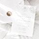 Elegant floral wedding invitations featuring a top border of dainty silver foil flowers with a white background. Personalise the foil floral wedding invitations with your names and wedding details in silver foil lettering with calligraphy script accents. Designed to coordinate with our Dainty Floral wedding collection.