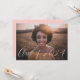 Elegant graduation party invitation featuring the graduate's horizontal photo with "Class of 2024" displayed in a white hand-lettered script. Personalize the front of the photo graduation party invitation with the graduate's name and school. The invite reverses to display your graduation party details with a blush pink background or color of your choice.