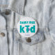 Dairy free kid with girl super hero figure on button. Dairy food allergy alert button. Customise with name or other text. Attach to medical bags to note 'epinephrine inside'. Pin to child's clothing, coat or backpack to alert others of food allergy. Designs by Designs by Lil Allergy Advocates www.lilallergyadvocates.com