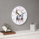 Fun Time to Milk the Goats dairy goat wall clock- with beautiful udders on 3 breeds of dairy goats, a bottle of spilled milk and a milk can on a milking stool