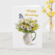 A delightful painting of a pitcher of daisies and butterfly. This card is completely customisable. Change the words Happy Birthday to read anything you like. A perfect card for your wife or daughter. Makes a beautiful get well card too.
