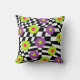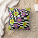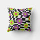 What a groovy accent this pillow will make for your sofa or bed. Throw pillow features funky flowers in shades of lime green , pretty purple , and hot pink, against an abstract black and white checked background.