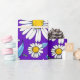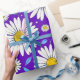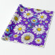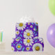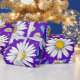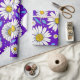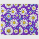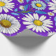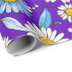 A colourful seamless pattern featuring daisies with yellow centres, blue leaves, and a vivid purple background. Perfect for spring themes, textile designs, and cheerful digital or print crafts.