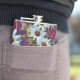 The flask itself is fine. It’s a cheap flask, obviously bought in bulk, however am prepared to overlook that. Given that it is a personalized item, I would have liked to have seen gift boxing instead of the generic packaging. Terrible printing, and/or quality. It’s a cheap, tacky vinyl. It is not cut straight and is also applied in a way that it is overhanging the bottom, causing the glue to catch on items and it will eventually roll and tear, damaging the wrap.