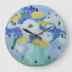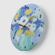 This wall clock features a painting by Brendan Loughlin, an artist from Guilford, Connecticut. Beautiful yellow and white daisies with blue irises.