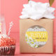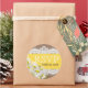 Daisy bouquet over white lace and burlap RSVP label design for a rustic wedding.