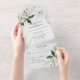 Adorned with delicate, white and yellow daisies on an aged white crackle paint background, our invitation brings the beauty of nature to your guests' fingertips. These daisies symbolise purity, love, and loyalty, reflecting the purity of your love and the promise of a lifelong journey together. The All-in-One wedding invitations are both beautiful and practical by combining the wedding invitation with an easy to remove perforated RSVP postcard. They are also quick and easy to prepare for mailing. Simply address the invitation, fold the back flap and seal with the included clear stickers. Once your guests receive the pre-addressed invitation they simply tear off the perforated RSVP card and drop it in the mail.
